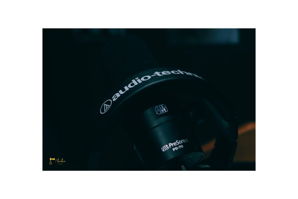 Notre studio est doté d’un matériel professionnel de haute qualité pour garantir des enregistrements sonores d’exception. Chaque participant dispose de son propre micro dynamique, assurant une capture claire de la voix tout en réduisant les bruits de fond. Nous utilisons des casques professionnels pour un monitoring en temps réel et un confort maximal lors de vos sessions.